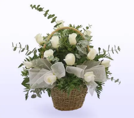 Basket Of White Roses (Roses, Pink-Roses, White-Roses )